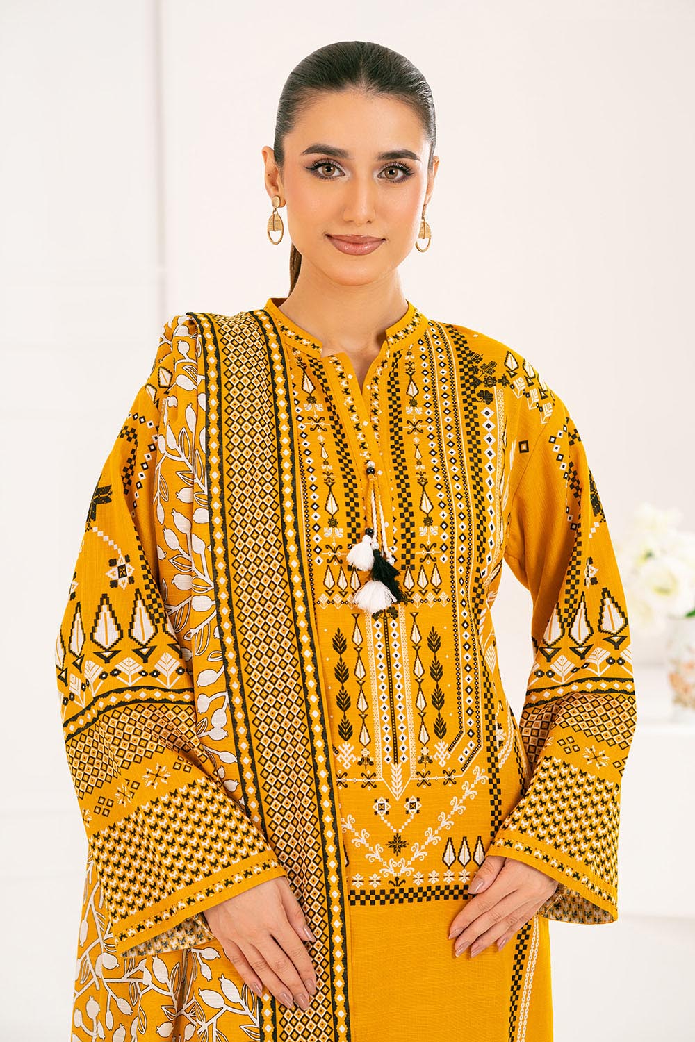 2. Unstitched suits include fabric and patches only as mentioned in the description above (not Embellishments, e.g., tassels, etc).