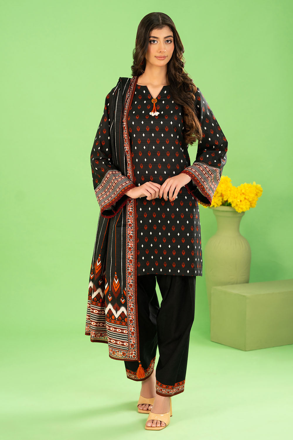 2. Unstitched suits include fabric and patches only as mentioned in the description above (not Embellishments, e.g., tassels, etc).