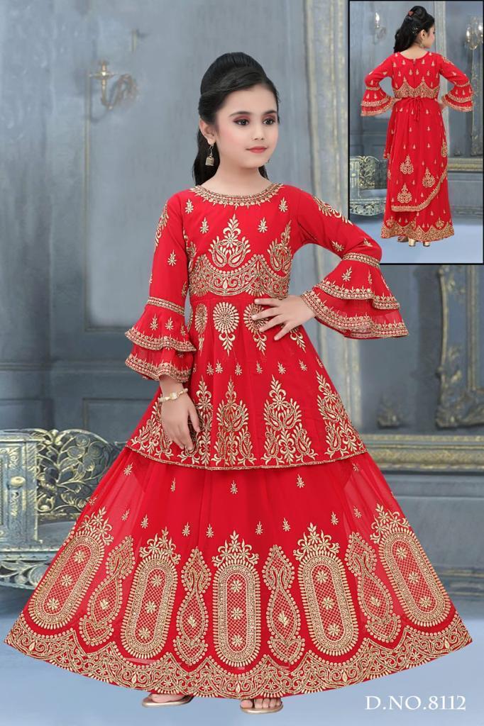 - Georgette Heavy embroidered Lacha with trail and designer bell sleeves