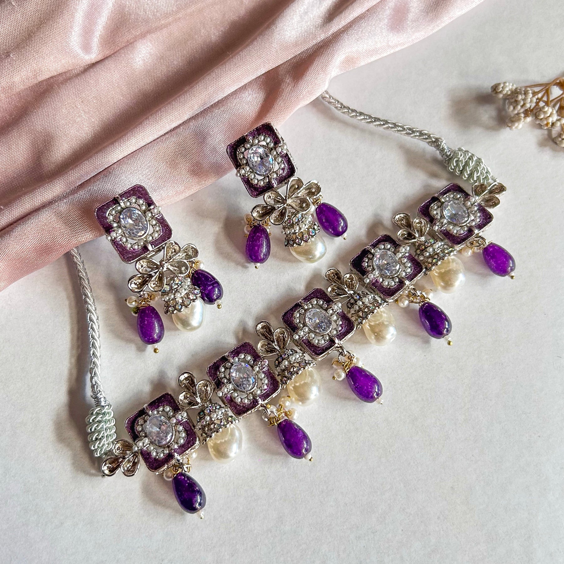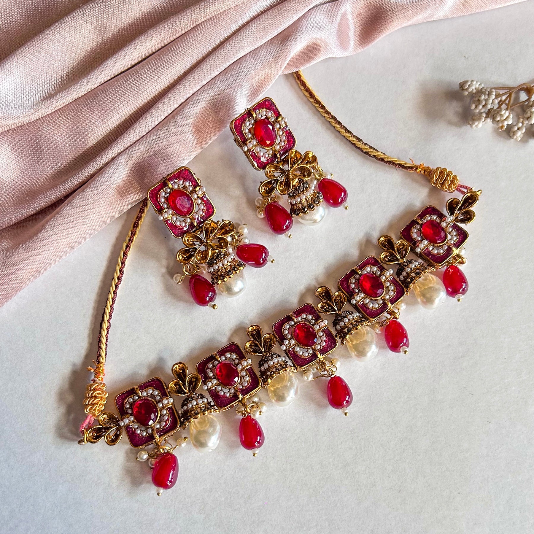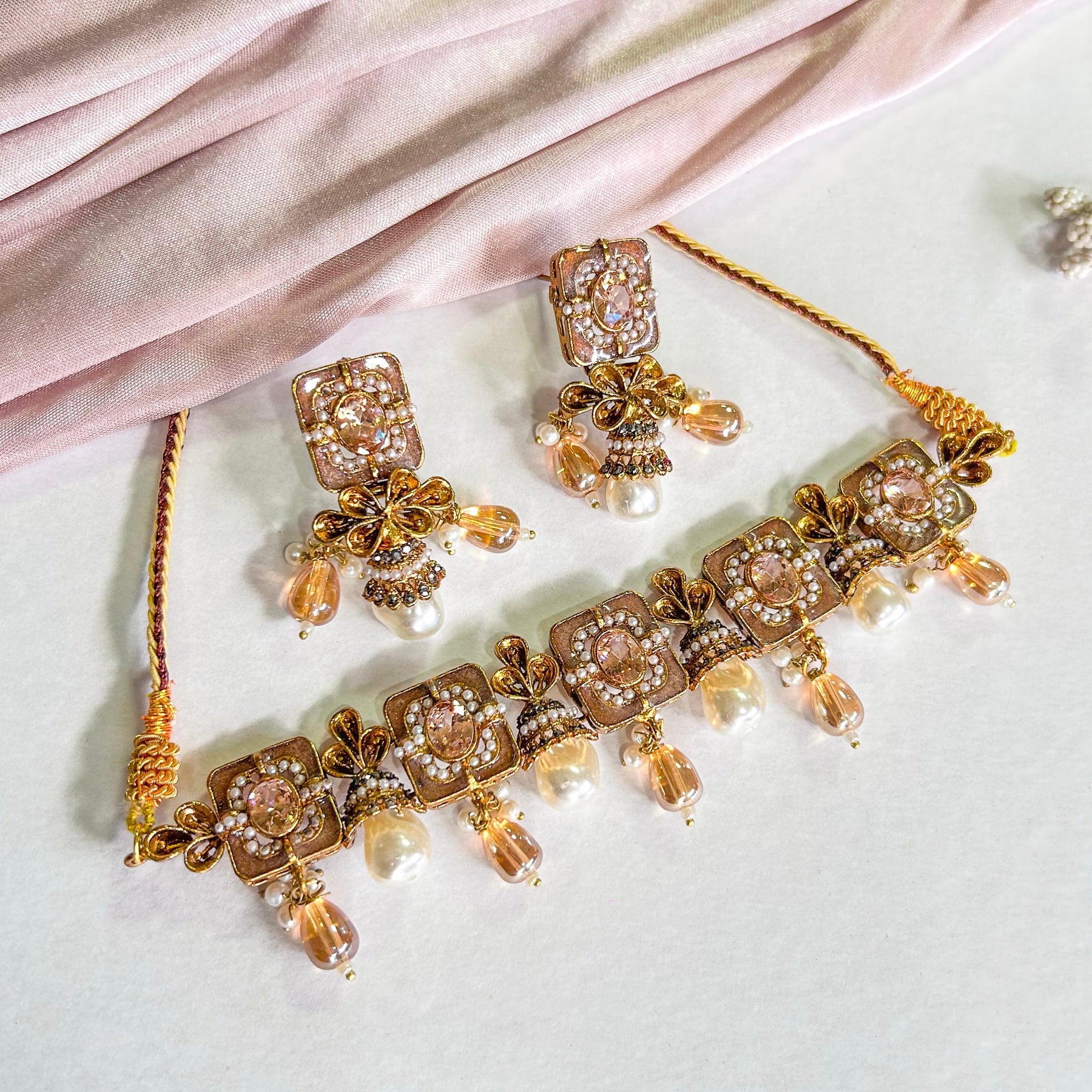 The Zewar-e-Moti Pearl and Meena Choker CS-45 is a stunning piece of jewelry that exudes elegance and sophistication. It features a delicate choker design adorned with exquisite pearls and intricate Meena work. The choker is crafted with precision and attention to detail, making it a perfect accessory for any occasion.