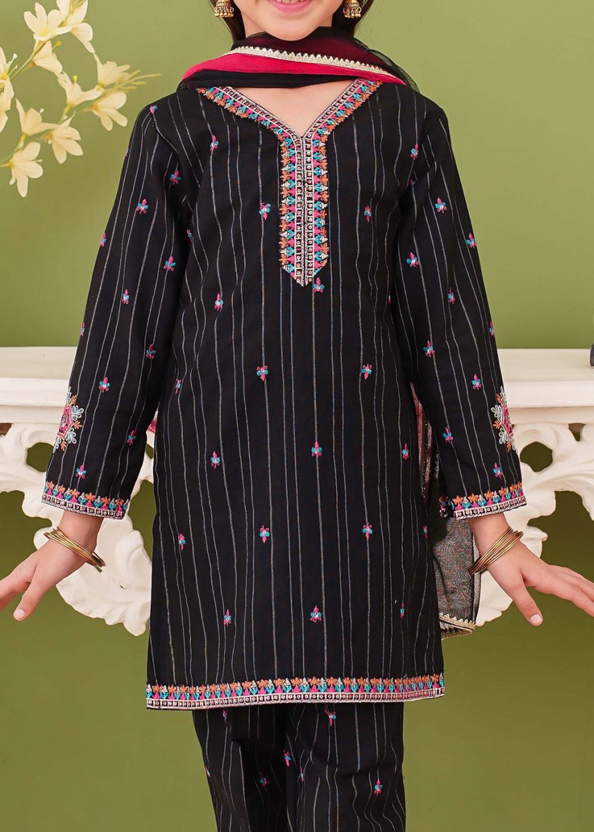 Modest 3 Piece Stitched Kid’s Embroidered Khaddar Dress - 9990 Black