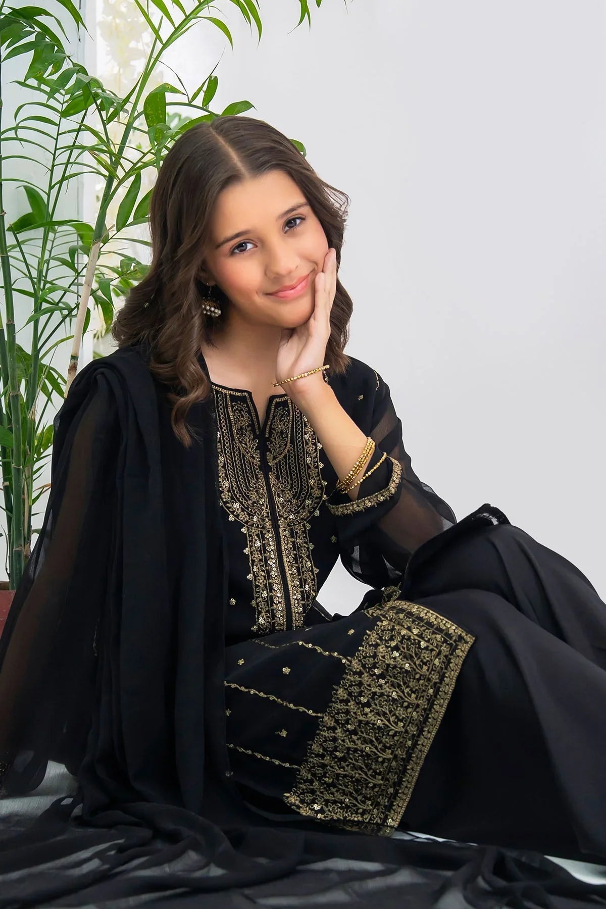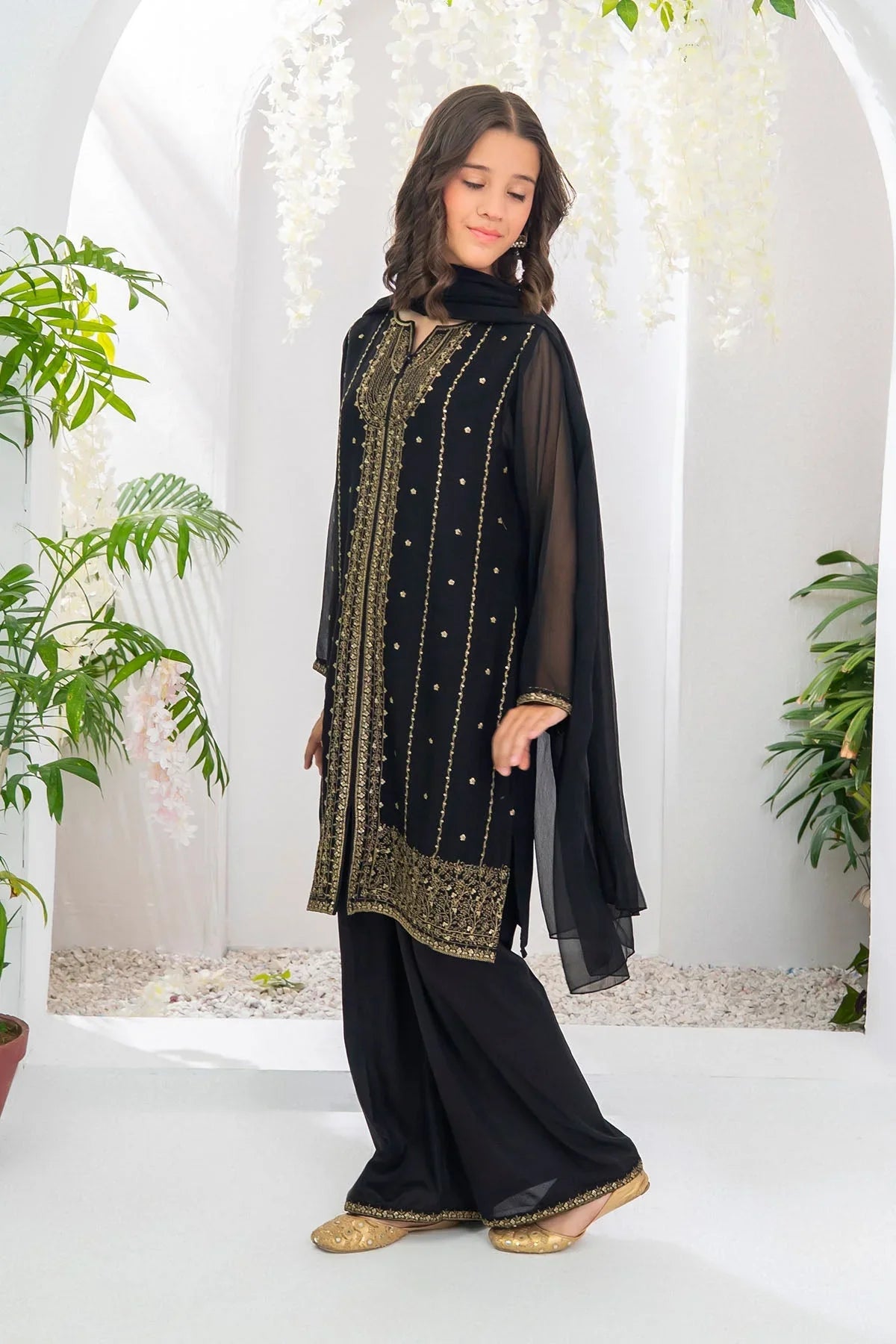 Ochre Clothing Stitched Kid’s Chiffon Coat 3 Pc Suit - EM-69