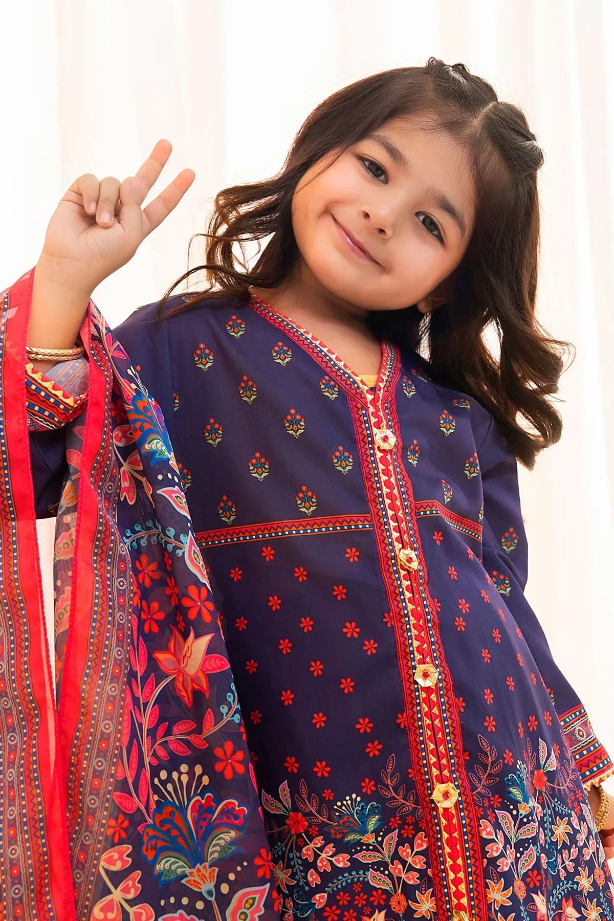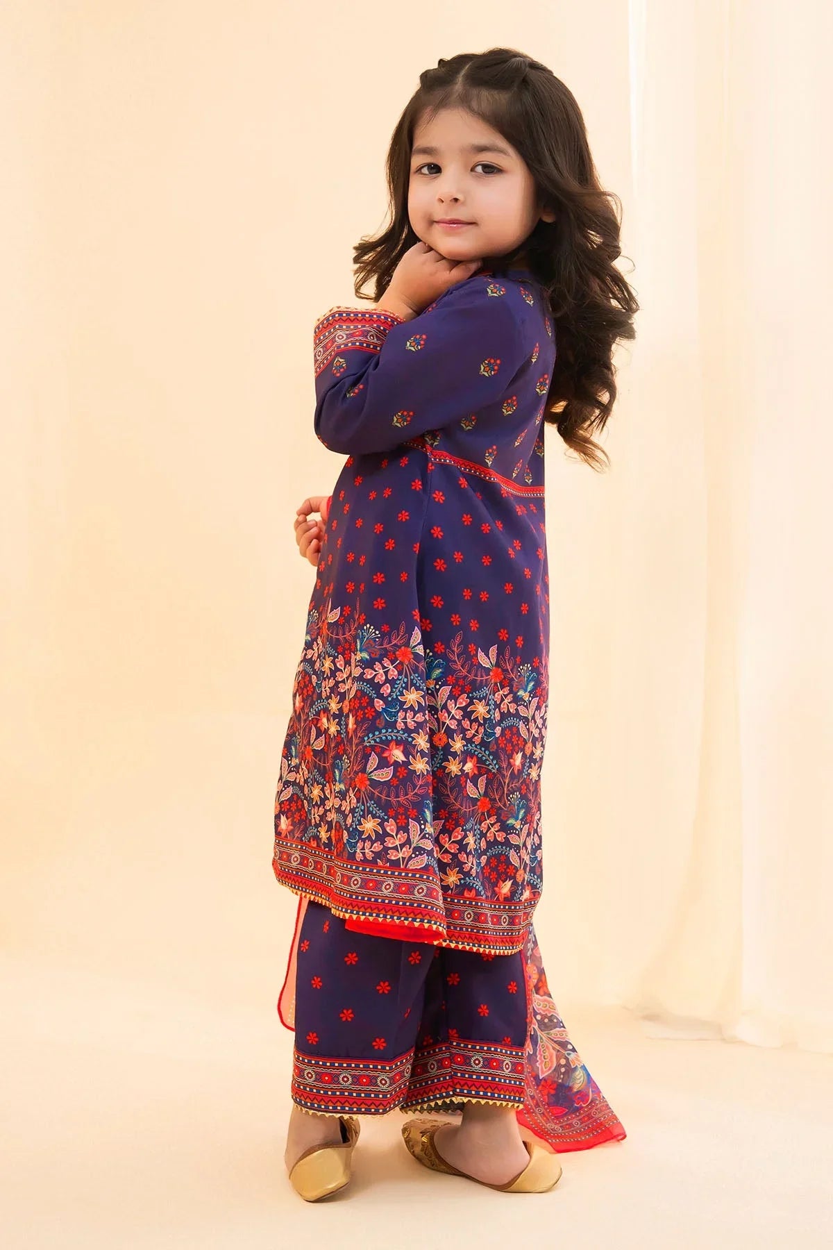 Ochre Clothing Stitched Kid’s Poly Lawn Digital Printed 3 Pc Suit - INDP-52