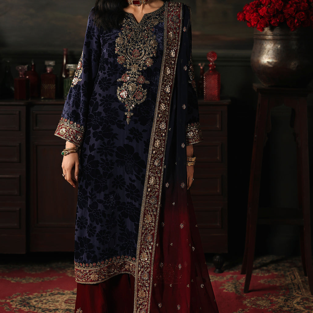 Charizma 3 Pc Unstitched Embroidered Premium Valvet Suit - CVT5-11