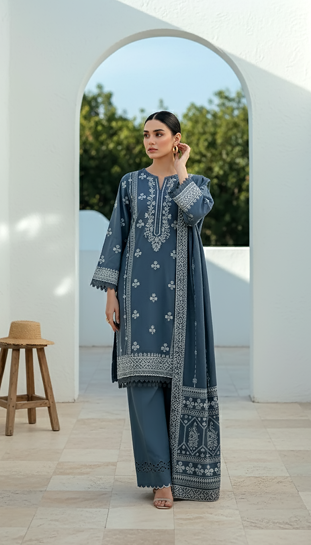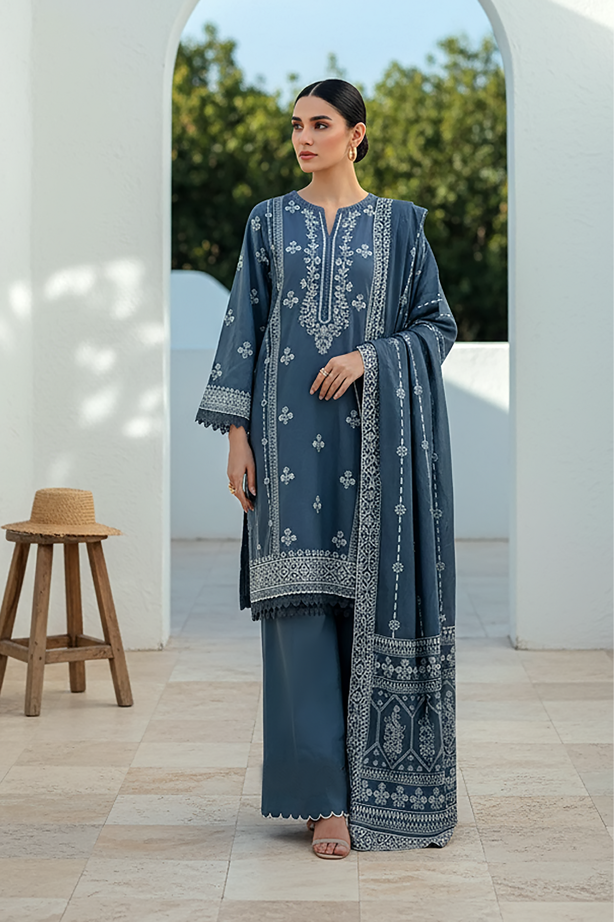 2. Unstitched suits include fabric and patches only as mentioned in the description above (not Embellishments e.g. tassels etc).