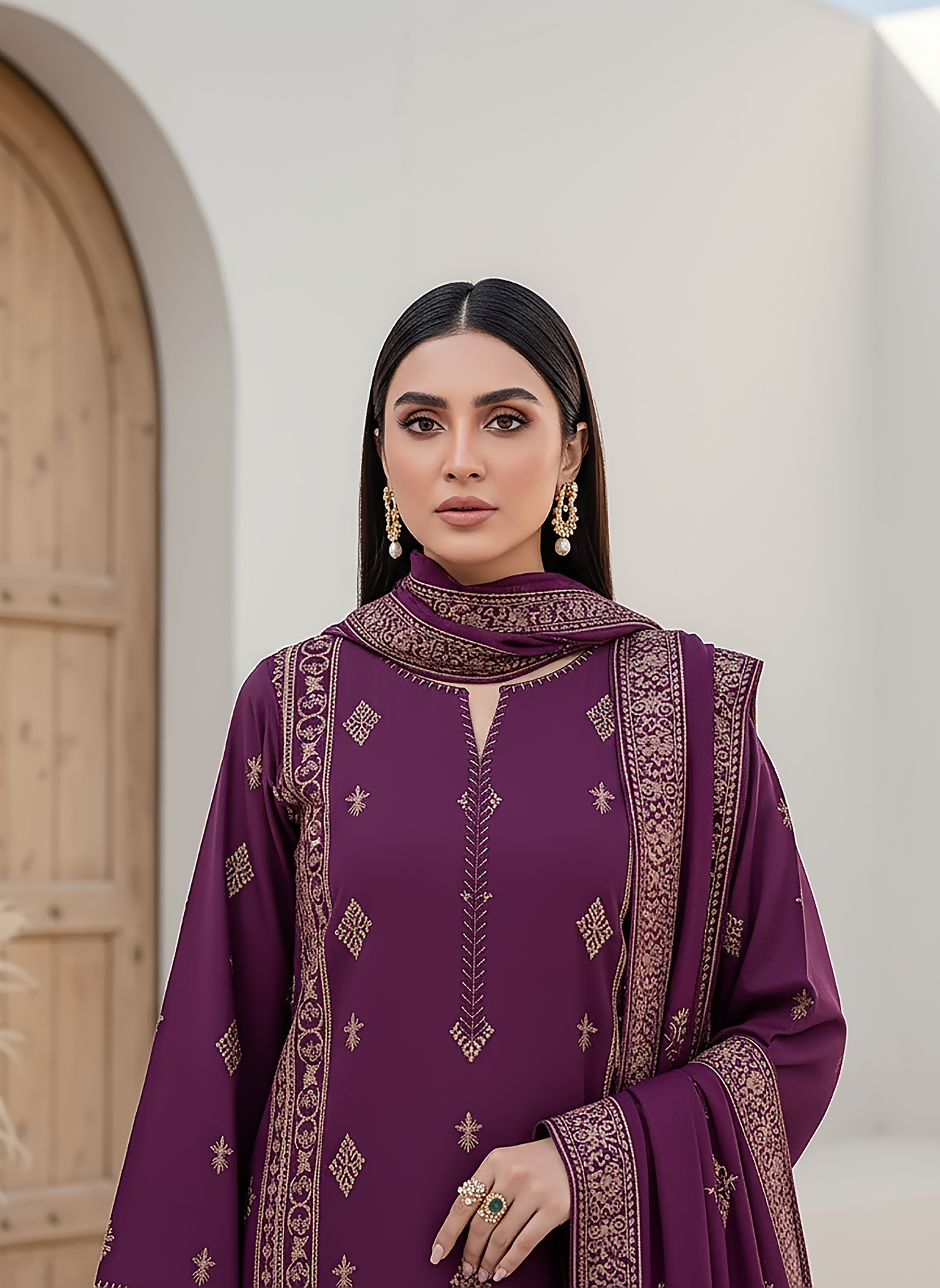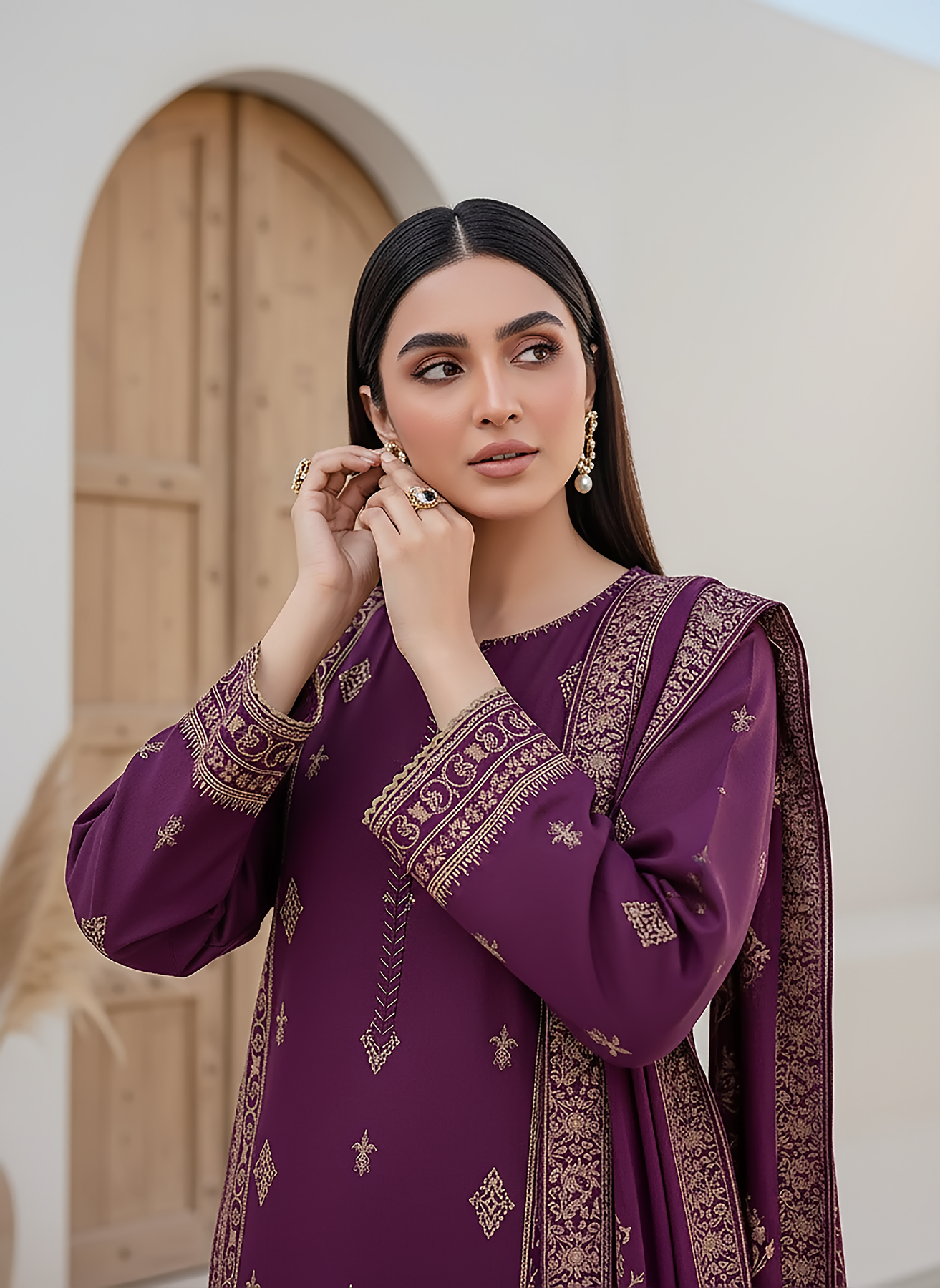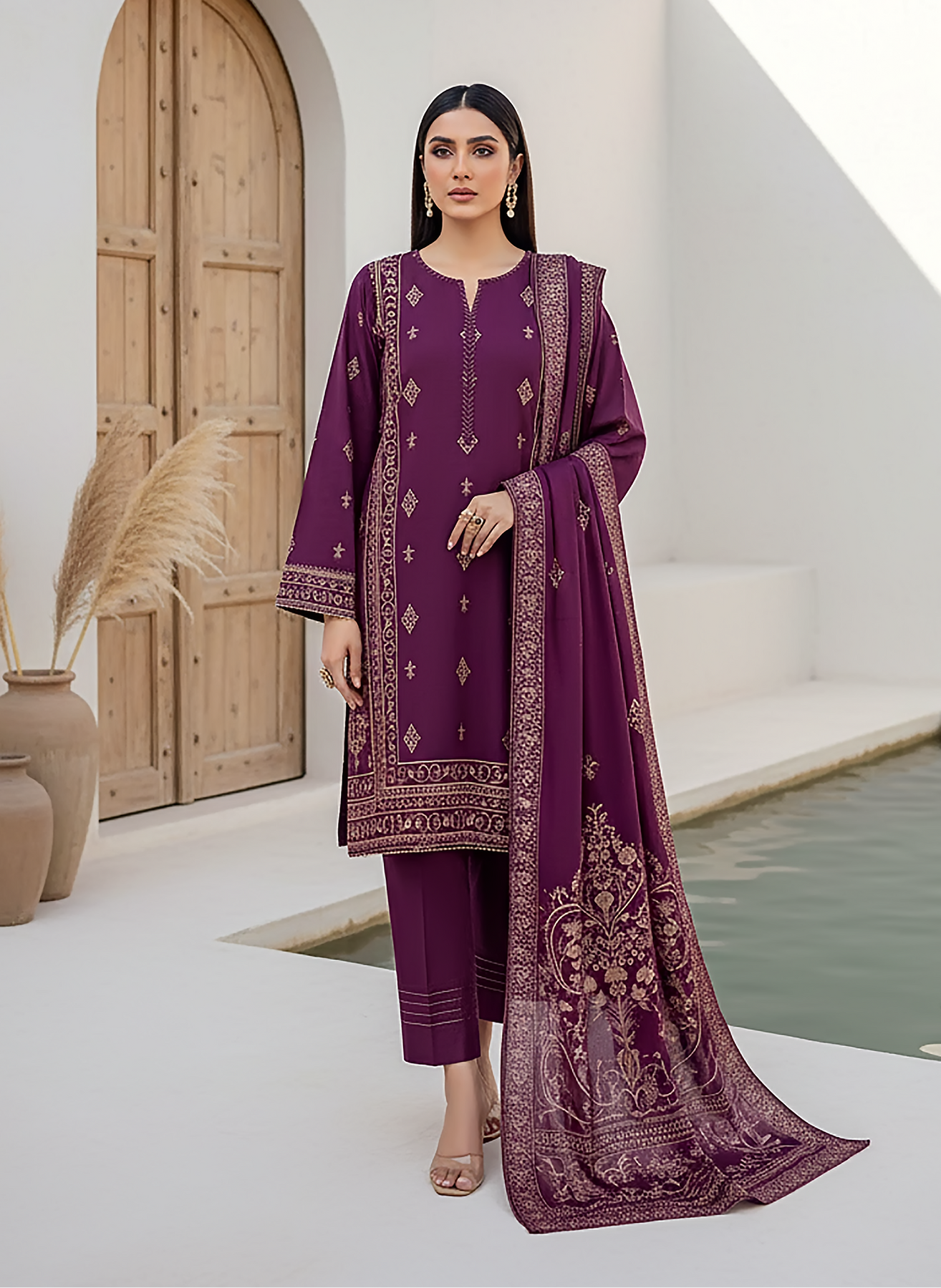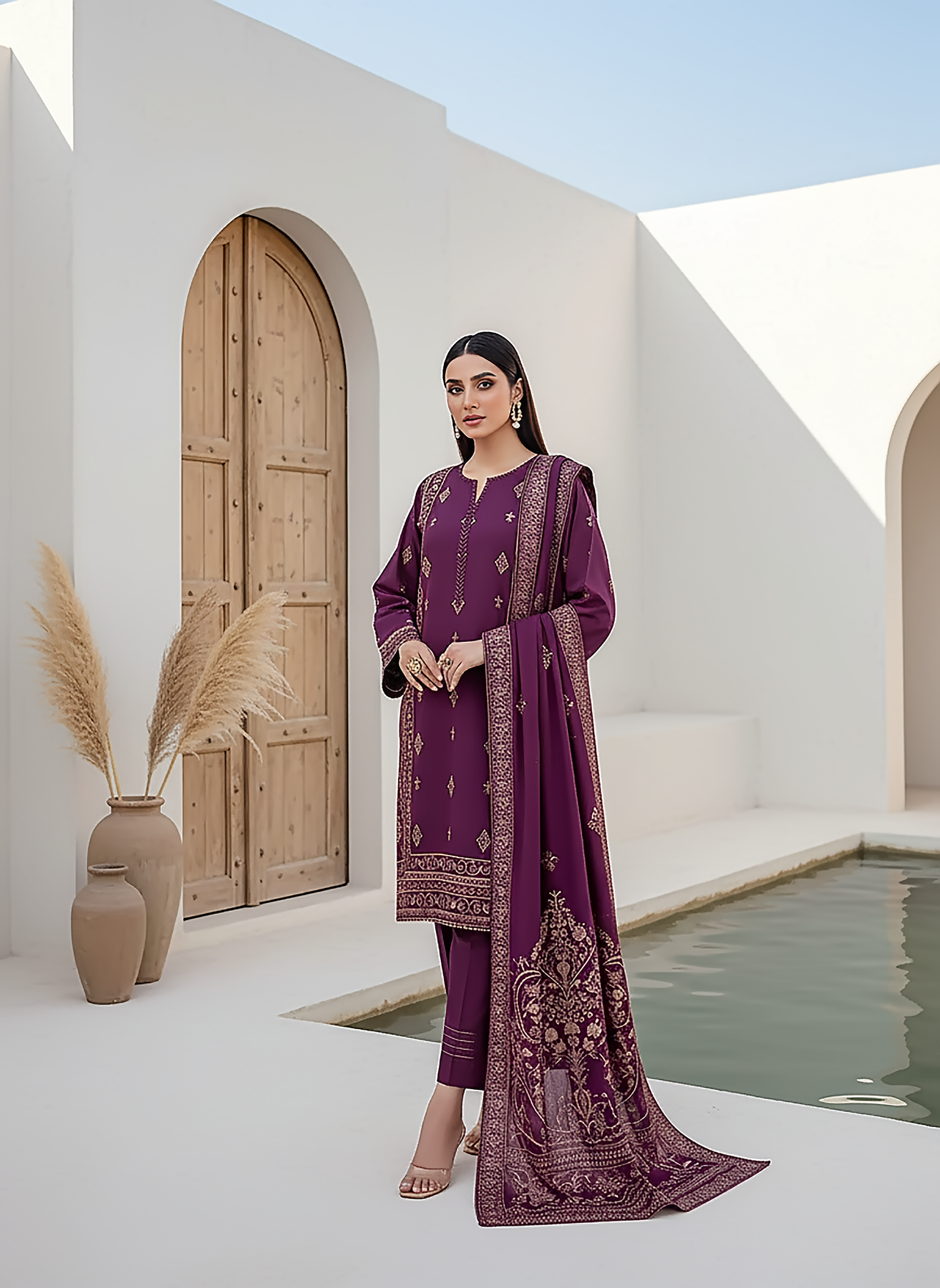 Lakhany 03 Piece Unstitched Printed Pashmina Suit - LG-RL-0348-A